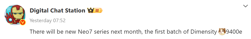 According to the leak, this new phone will come with the Dimensity 9400e chipset and is likely to be named Realme Neo 7 Pro. This chipset is an upgraded version of the Dimensity 9400, which includes some custom-tuned cores. Although it is not a big upgrade, its performance is said to be better than the Qualcomm Snapdragon 8s Gen 4.